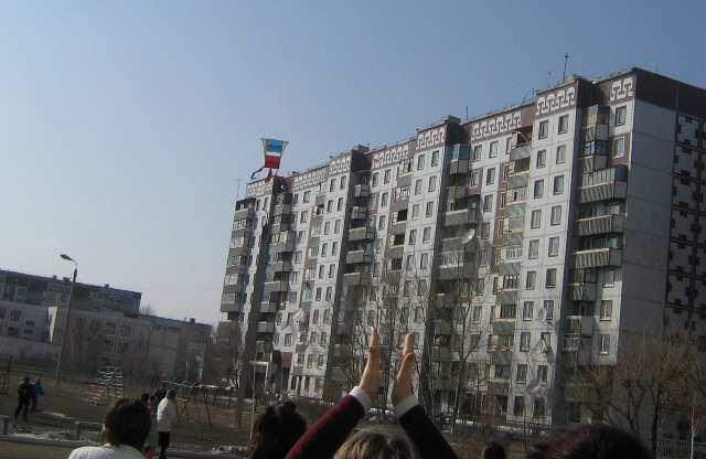 Запуск воздушного змея на весенних каникулах в школьном лагере "Достык" (2006-2007уч.год).